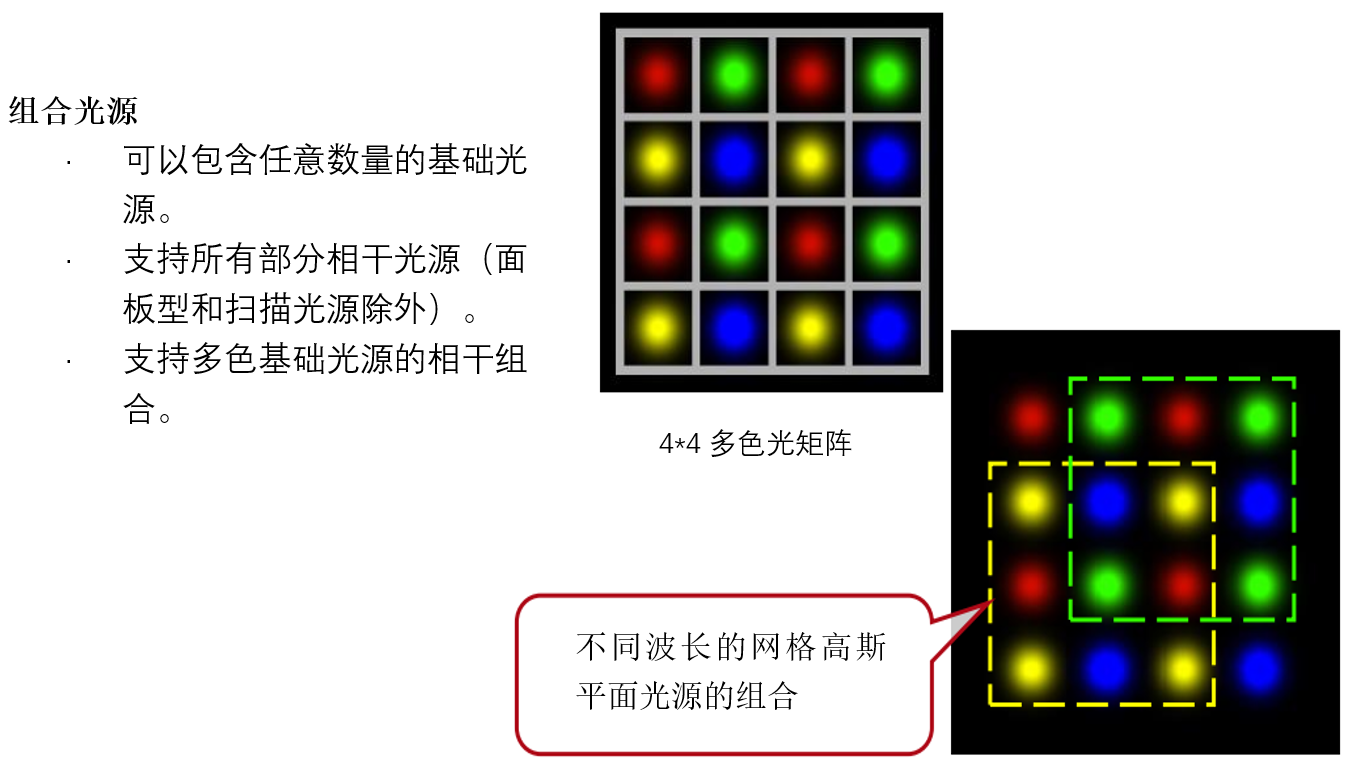 能够在一个系统中包含多个光源是许多应用的基础,如成像或照明。VirtualLab Fusion提供了解决这类问题的高级选项。在本文档中,我们简要概述了如何设置复合光源,并给出了几个仿真示例。