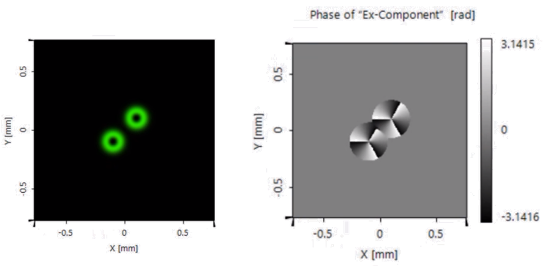 运行之可以看到最后得到和原点对称分布的涡旋光束,如图10所示。