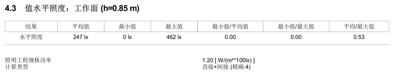 数值图显示区域照度为250-450lx。