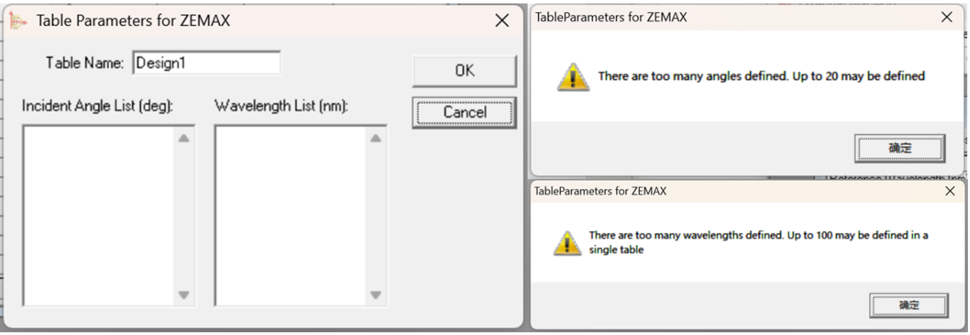 在之前的版本中,导出Zemax表中对入射角和波长均有数量限制,如下图
