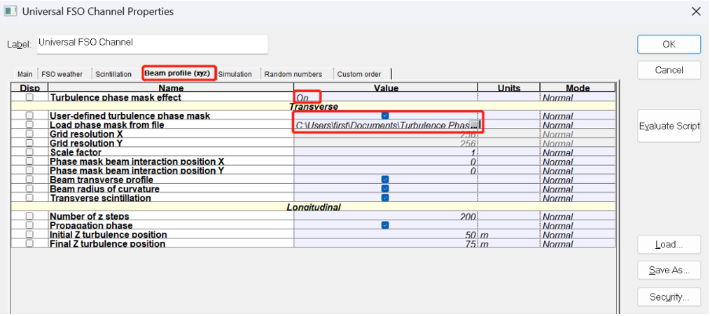 FSO信道中我们还可通过导入数据的形式来定义大气湍流的相位,可按照图3进行设置。
