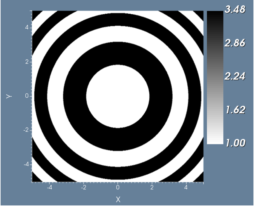 图1.波长λ=0.6 μm,焦距f=8 μm的菲涅耳波带片。
