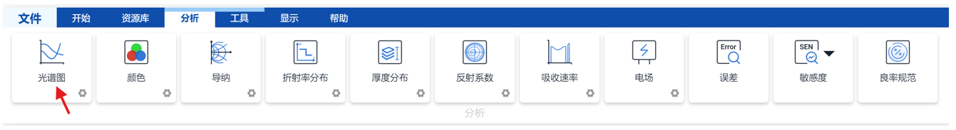 1、在分析选项卡中,用户可以使用光谱图分析功能。点击⚙打开设置窗口。