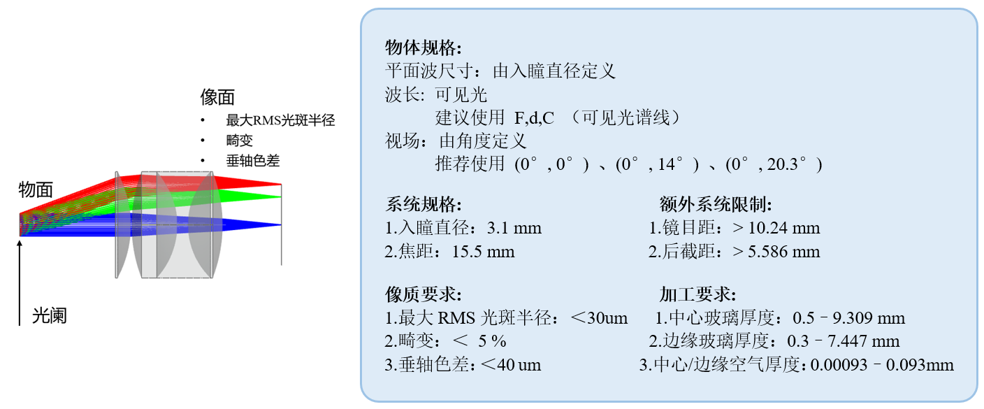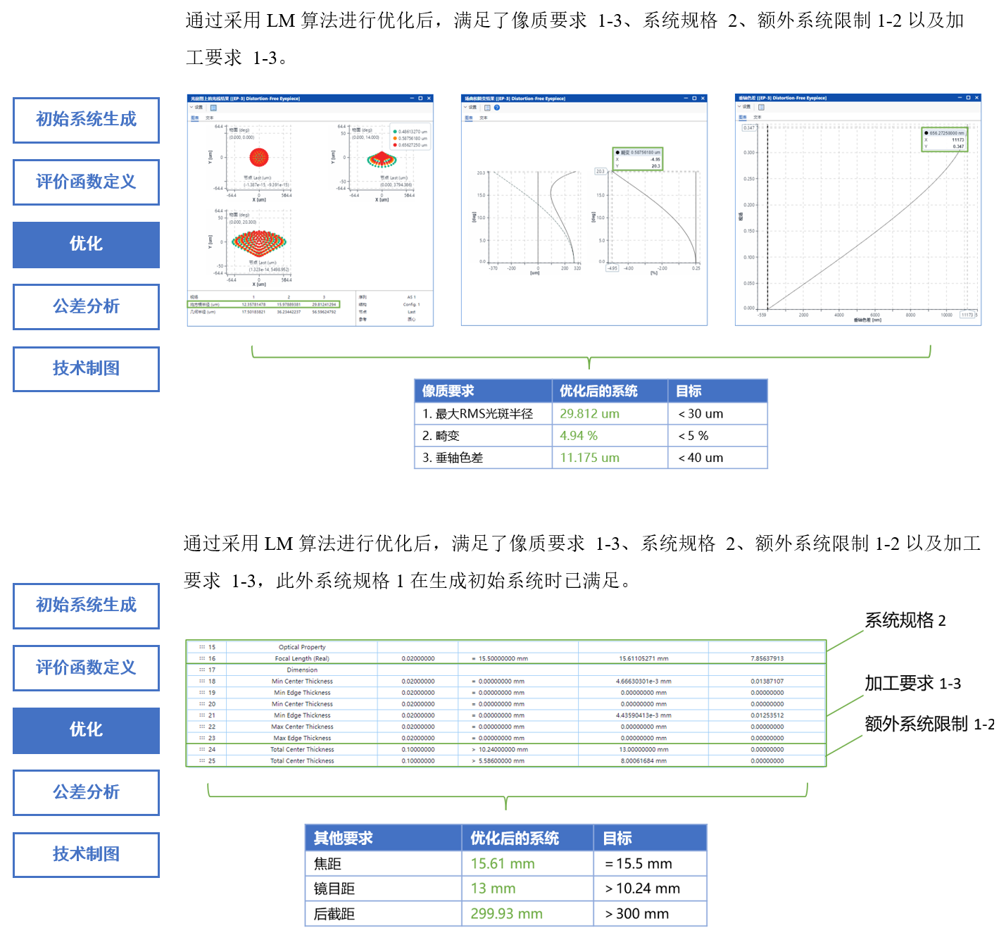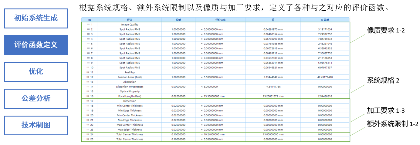 设计结果如下,像质,系统规格、额外系统限制以及加工要求均满足预期设计目标。