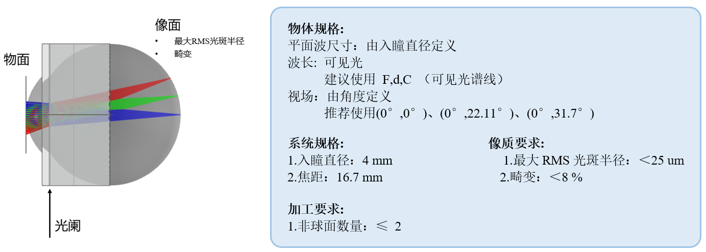 根据系统规格、额外系统限制以及像质与加工要求,定义了各种与之对应的评价函数。