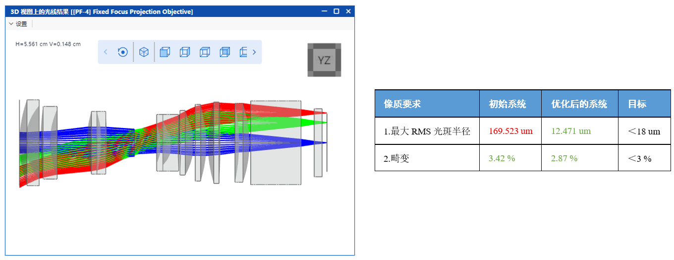 优化后系统的3D光线追迹视图