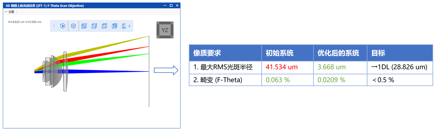 优化后系统的3D光线追迹视图