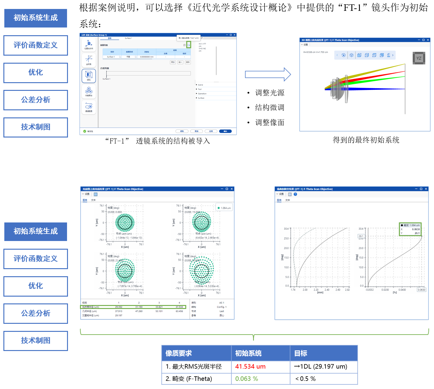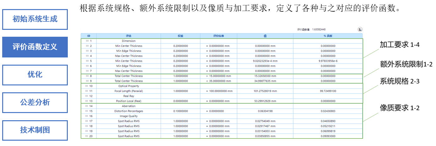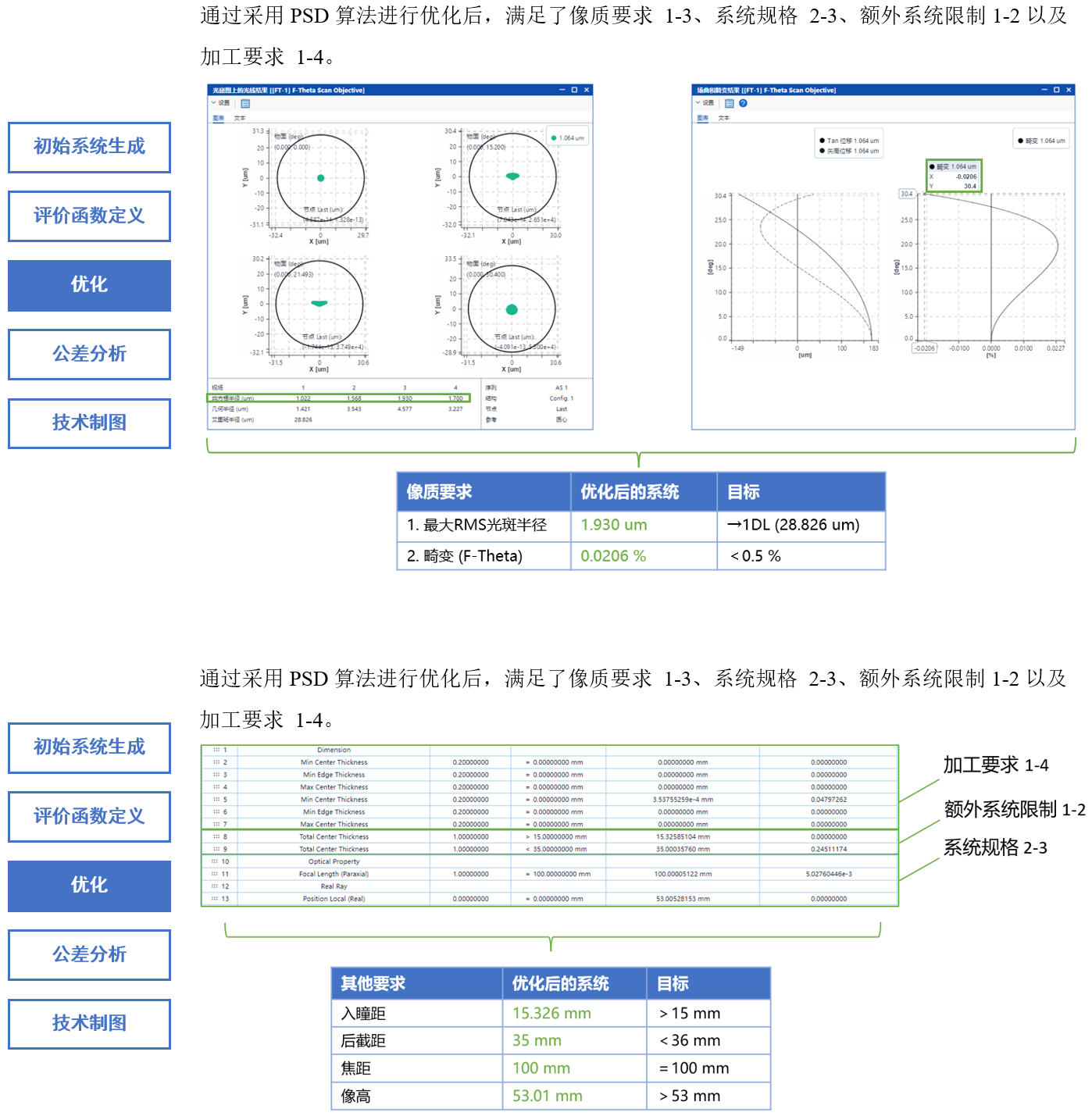 设计结果如下,像质,系统规格、额外系统限制以及加工要求均满足预期设计目标。