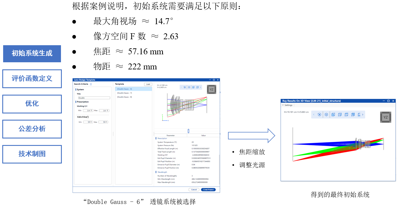根据系统规格、额外系统限制以及像质与加工要求,定义了各种与之对应的评价函数。