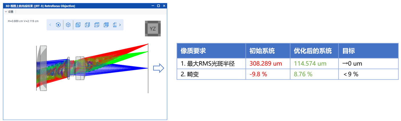 通过采用POWELL算法优化后,满足了像质要求 1-2、系统规格 2-3、额外系统限制1-3以及加工要求 1-2。