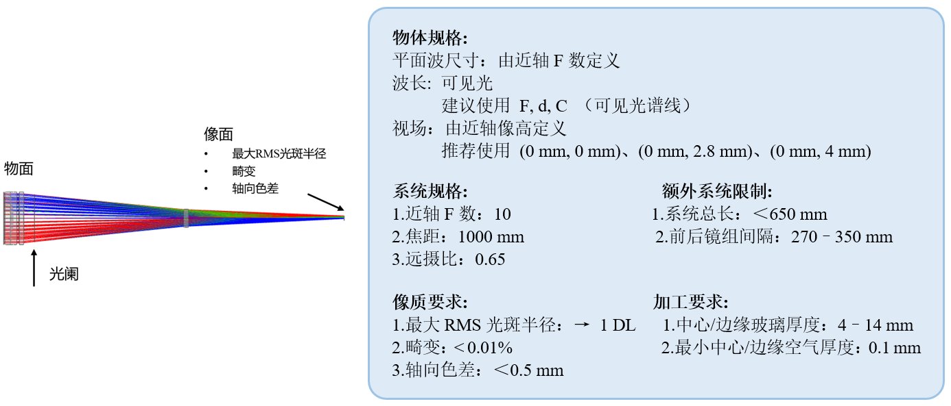 VirtualLab Unity应用:远摄型复消色差航拍物镜
