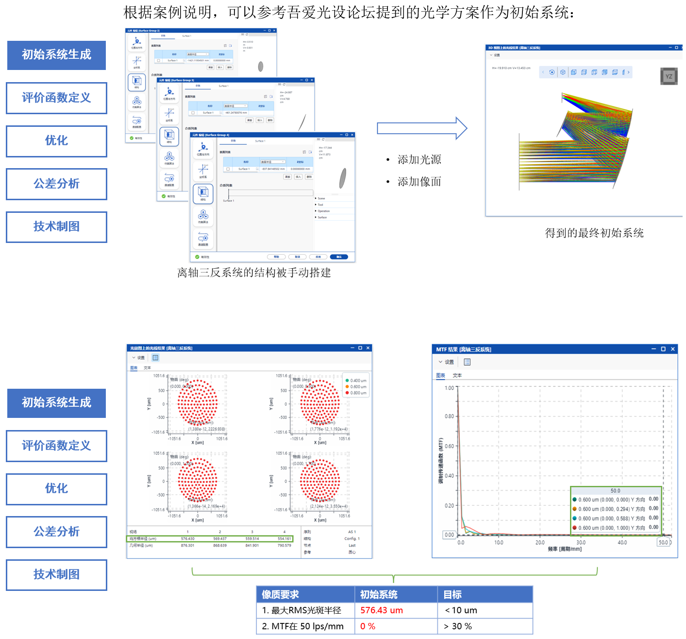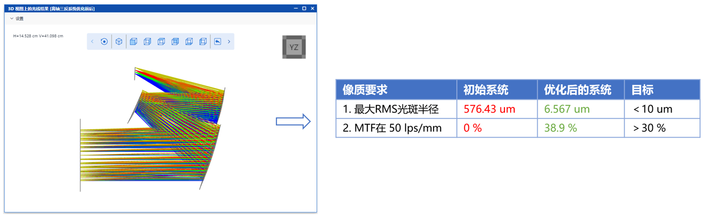 离轴三反系统广泛应用于航天遥感、天文观测、高端光谱仪及高分辨率成像设备中,用于实现大视场范围内的高清成像、消除中心遮挡影响以及满足宽光谱成像需求。其具有性能卓越(通常由三片反射镜组成)、成像对比度高、光谱适应性强的优点,适合应用于对成像分辨率和环境适应性要求严苛的高端光学系统。在本案例中,将在 VLU 中演示离轴三反系统的设计过程,包括初始系统生成、评价函数定义、优化以及结果展示。