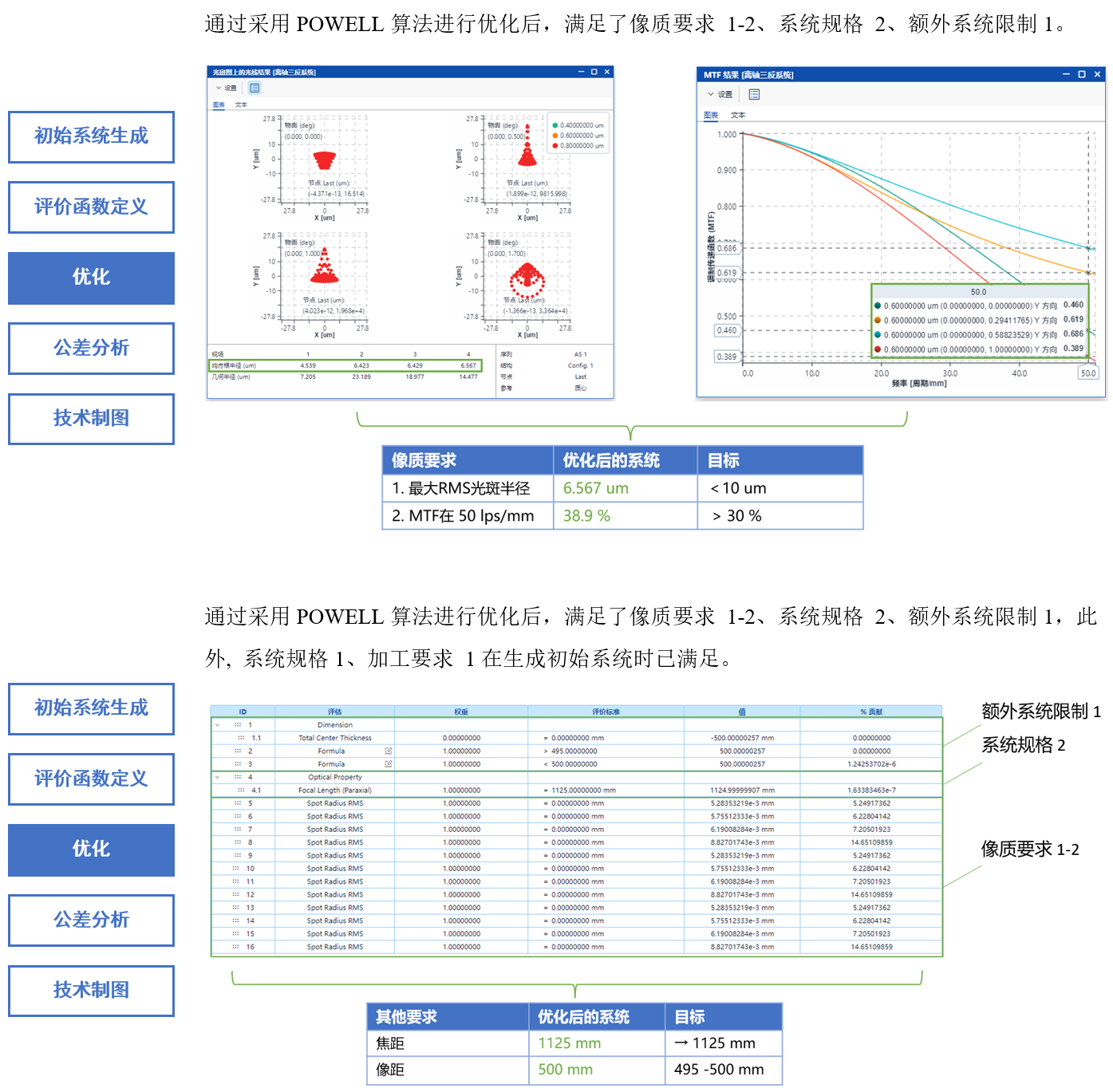 设计结果如下,像质,系统规格、额外系统限制以及加工要求均满足预期设计目标。