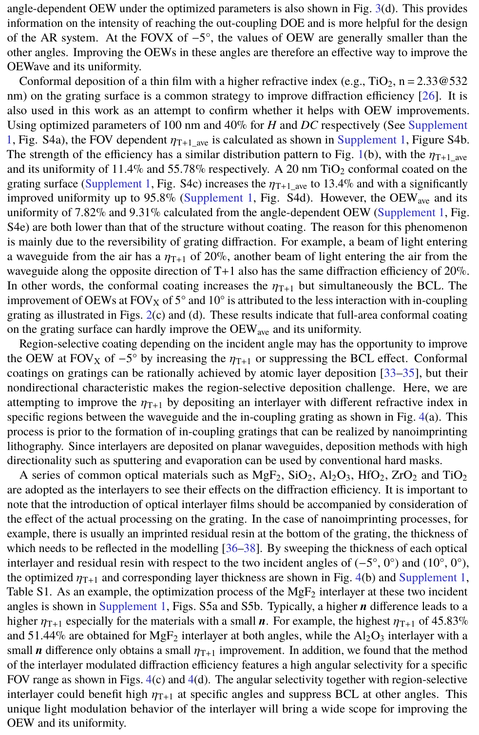 通过在增强现实显示器衍射光波导中插入光学中间层实现角度选择性衍射效率增强