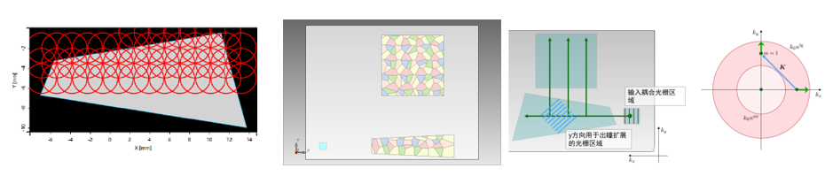 VirtualLab Fusion波导工具箱银版可以进行光波导系统建模和仿真,可在波导表面灵活的定义具有空间变化光栅结构的区域;可分析光学系统的多出瞳序列、多模式输出光以及光栅多级衍射效应,在衍射光波导仿真中可以考虑各种物理效应,如偏振、相干和干涉等,能够对衍射光波导系统进行光栅的优化,如一致性误差、效率和点列图等。