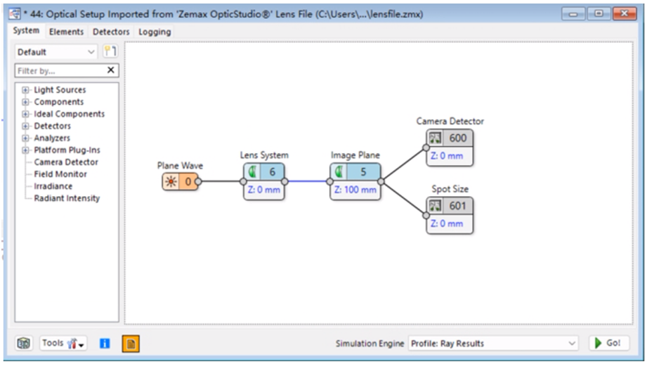 图3. 导入外部镜头文件生成的光路编辑器