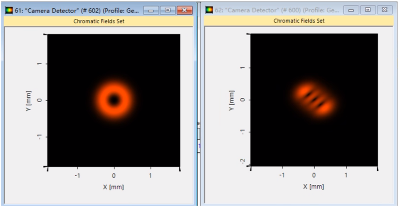 图8. 光源分布(左)和模式像散转换器VirtualLab Fusion场追迹结果(右)