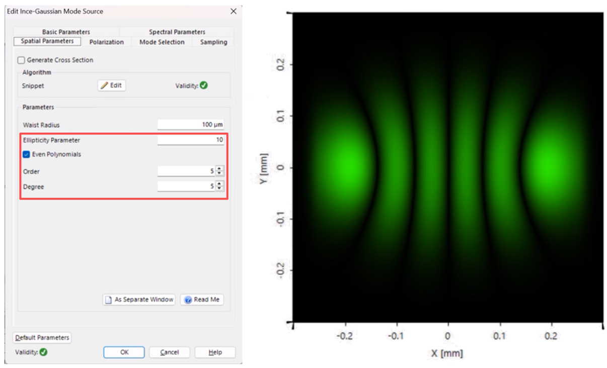 如图5所示,在因斯高斯模式中可以编辑椭圆度(ellipticity)、径向(Order)和角向(Degree)阶数。