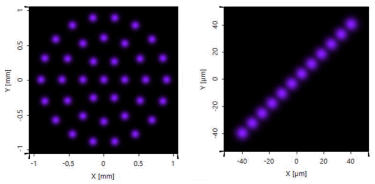 VirtualLab Fusion中包含沿着特定几何形状分布的模式,如六角模式和对角线模式(图6)。