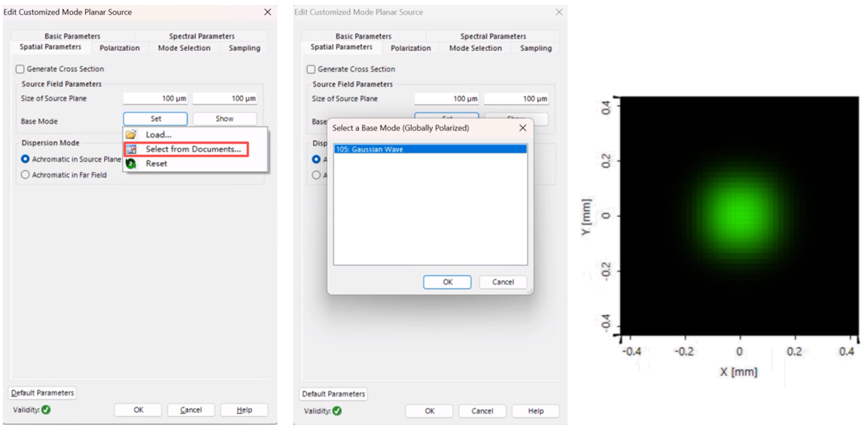 在部分相干光源的选项中可以设置基础模式,可以将打开的光源文件导入作为基础模式,如图7所示。