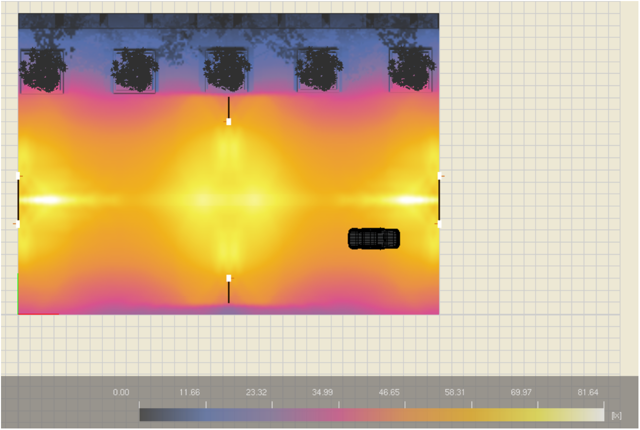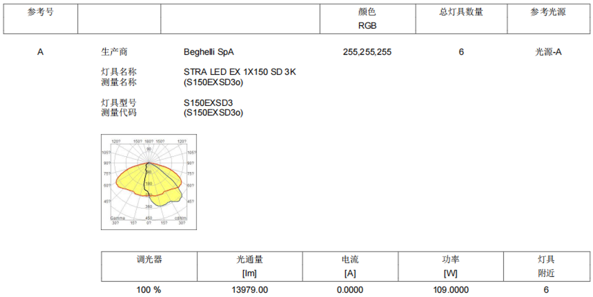 伪色彩图显示灯具所照射范围基本为暖黄色到淡紫色,颜色过渡平缓,照度分布较为均匀