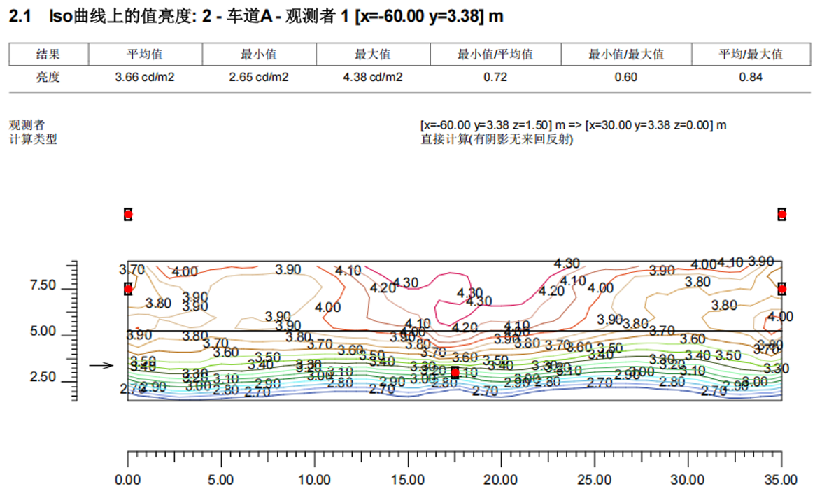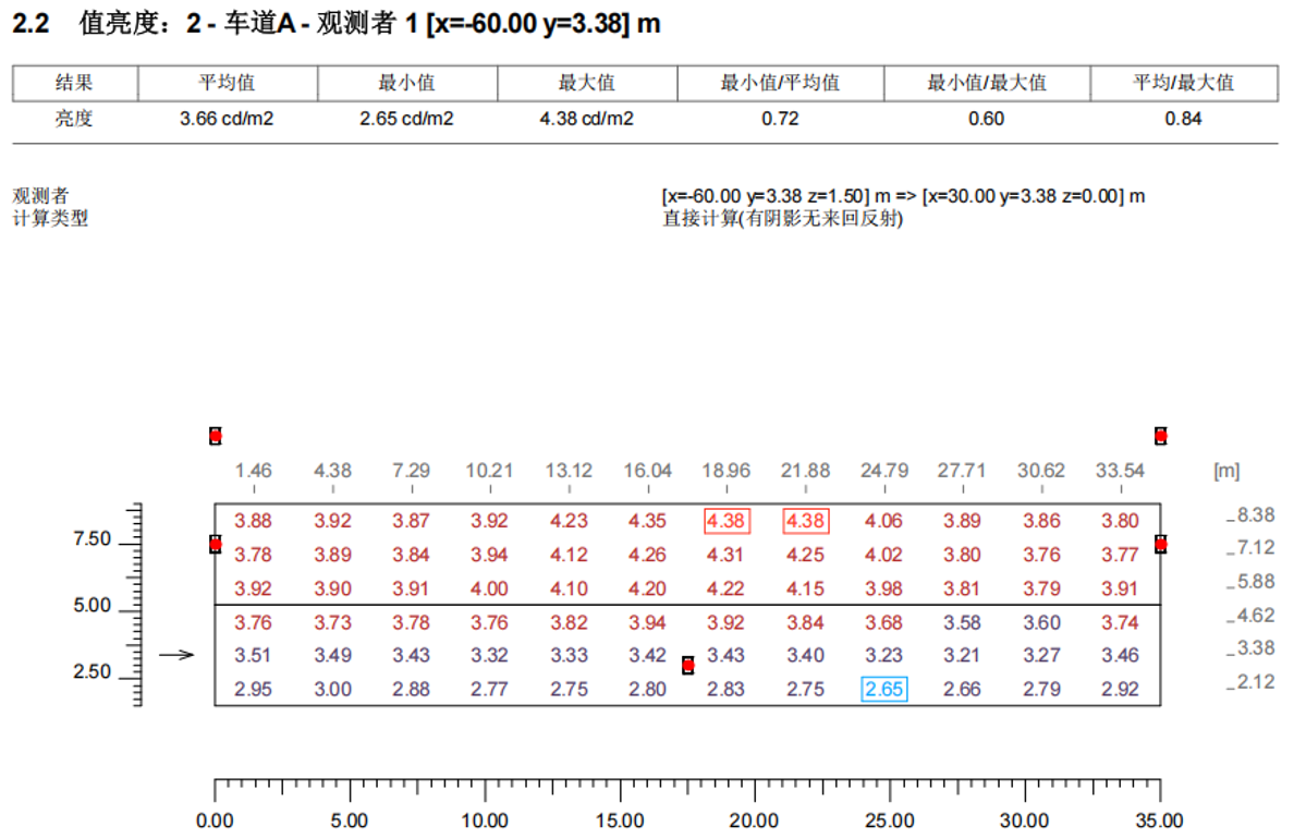 数值图显示区域亮度为2.65-3.66cd/㎡