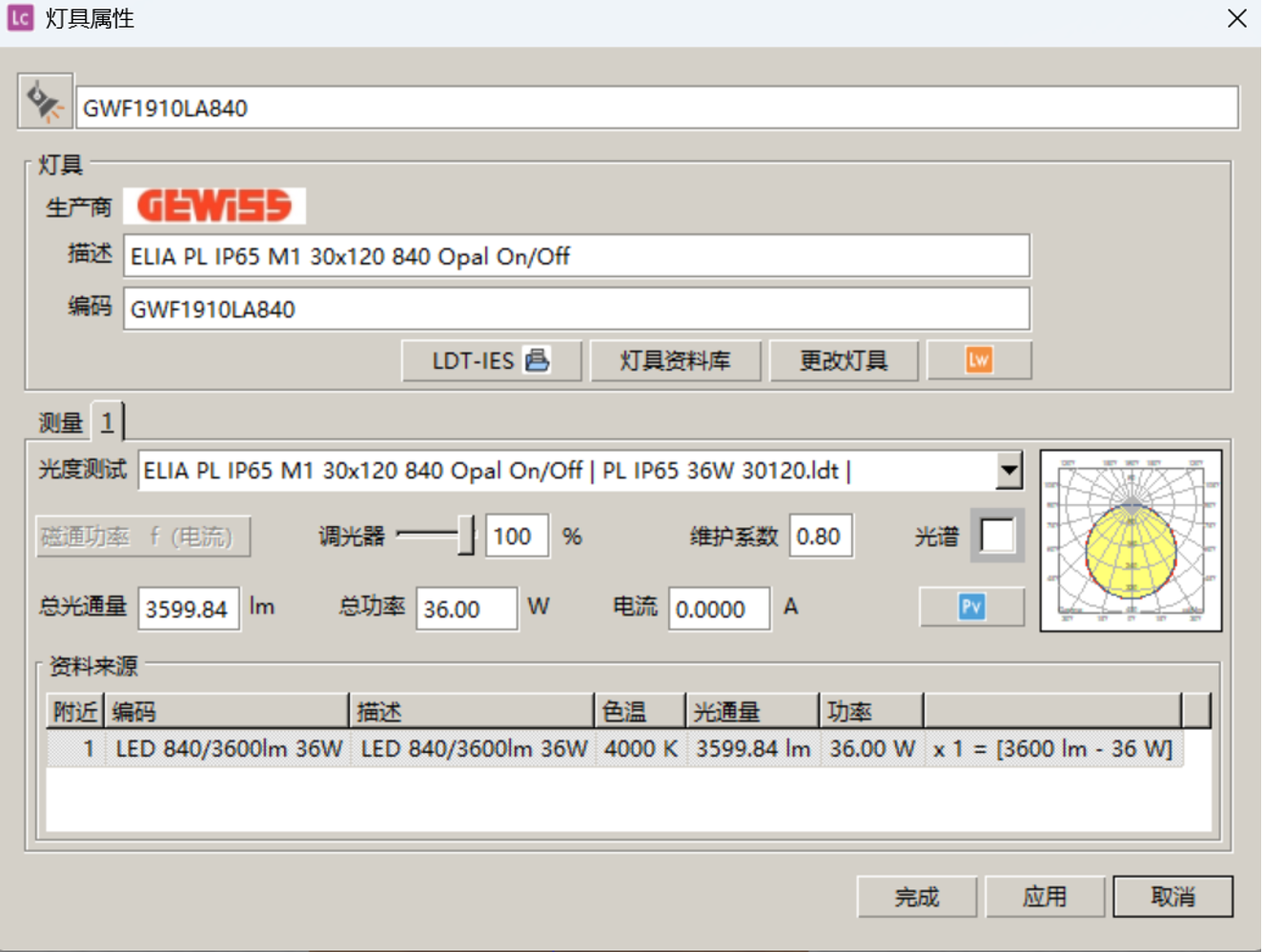 以上为本次案例所用灯具信息