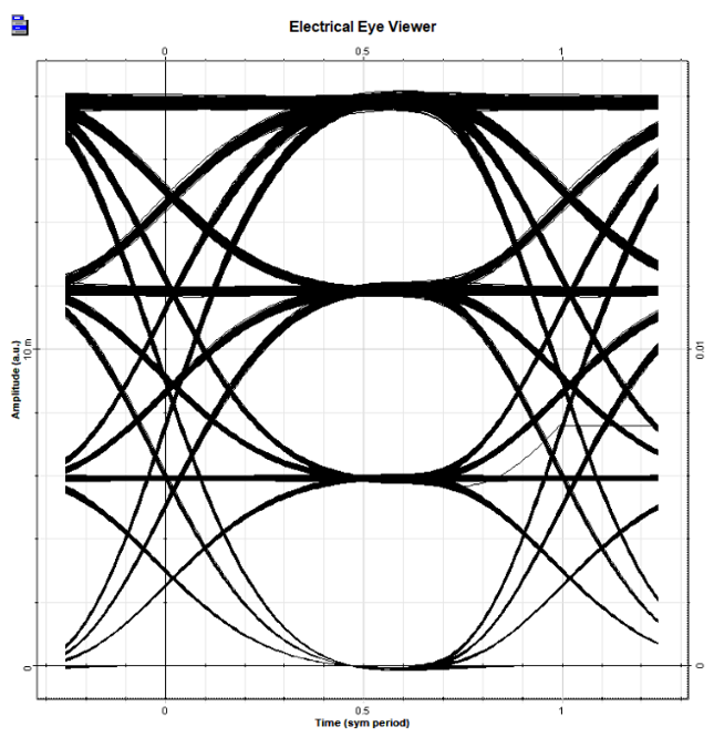 对于不考虑大气湍流相位以及闪烁影响,图5显示了理想传输过程的眼图。图6为考虑大气湍流以及闪烁影响眼图。