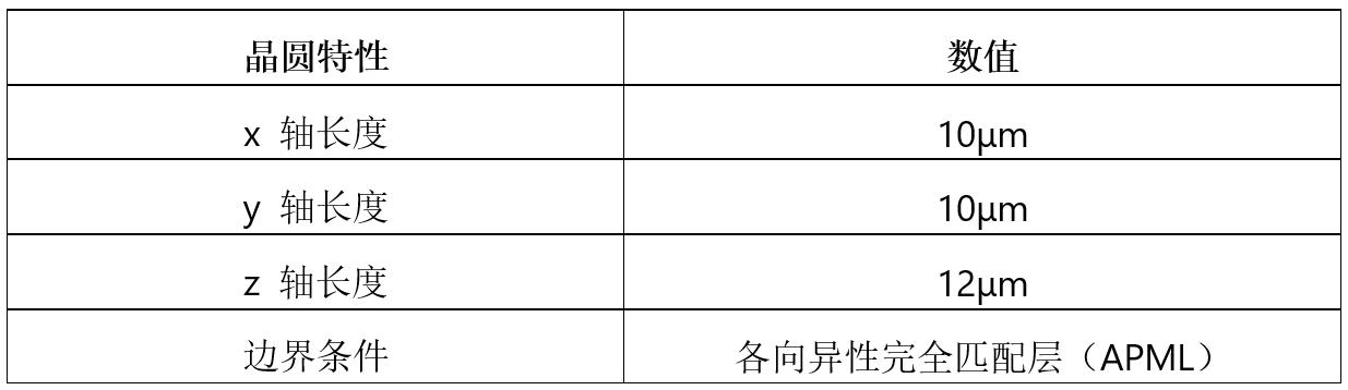 所有仿真将保持相同的通用晶圆、光源和离散化参数,具体如下文所述。每种透镜示例的详细信息将在对应章节中说明。