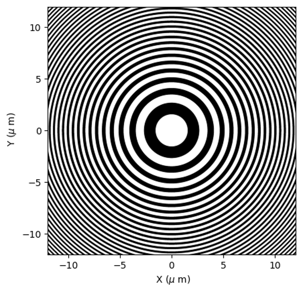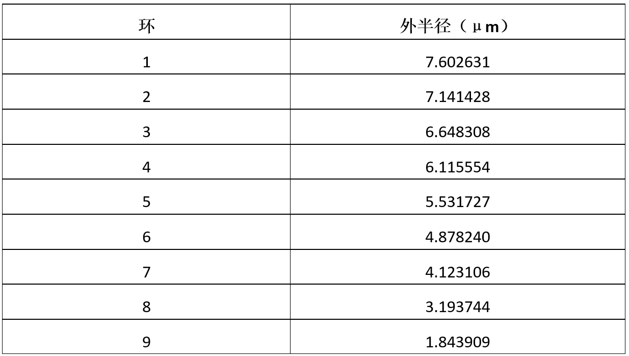 图1.波长λ=0.6 μm,焦距f=8 μm的菲涅耳波带片。