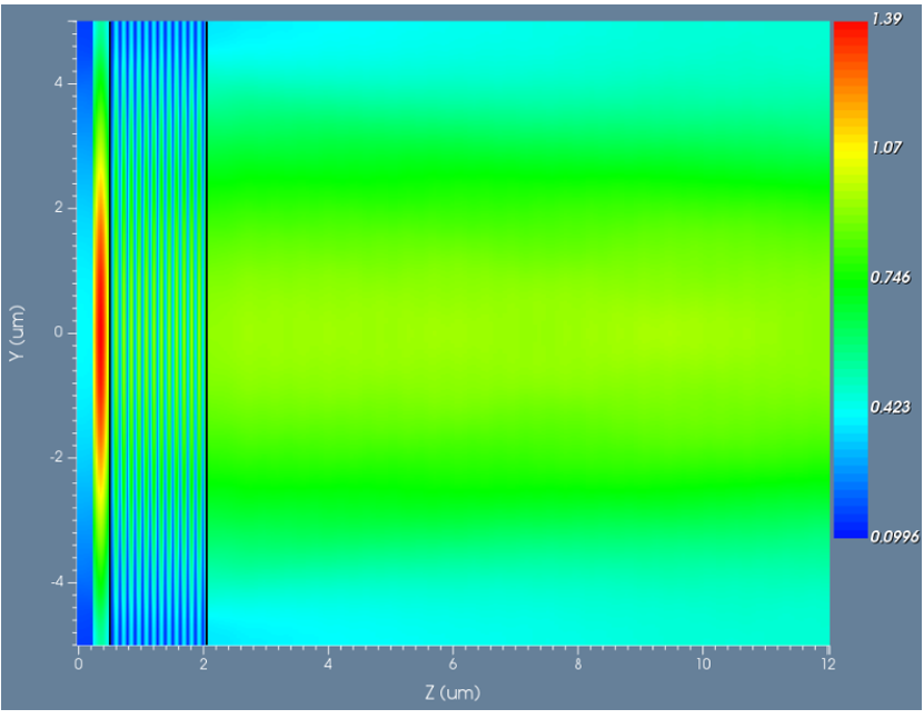 图8.超透镜在YZ平面的 Ey 场沿Z轴切片