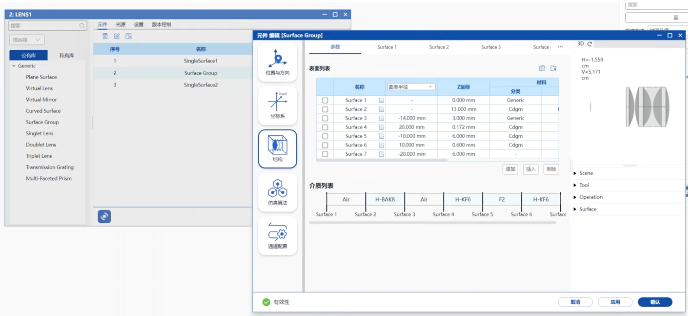 将在ZEMAX软件中设计好的透镜膜导出为.zmx文件,并在 VirtualLab Unity中导入该文件,进行进一步仿真设计。透镜文件的导入验证了 VirtualLab Unity 与ZEMAX之间可实现导入交互使用。