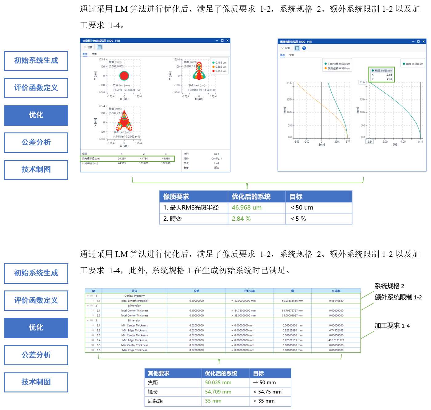 设计结果如下,像质,系统规格、额外系统限制以及加工要求均满足预期设计目标。