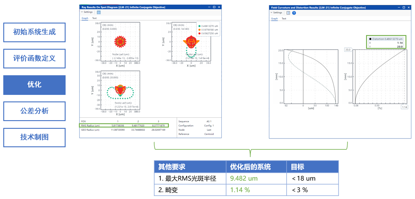 通过采用LM算法进行优化后,满足了像质要求 1-2、系统规格 2、额外系统限制1-3以及加工要求 1-2。
