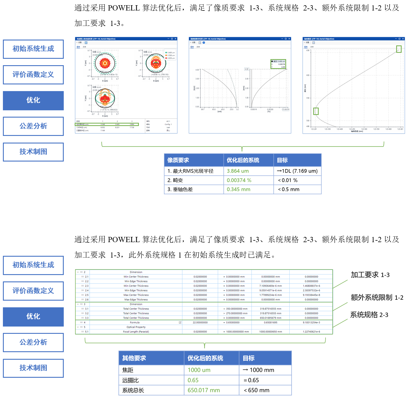 设计结果如下,像质,系统规格、额外系统限制以及加工要求均满足预期设计目标。