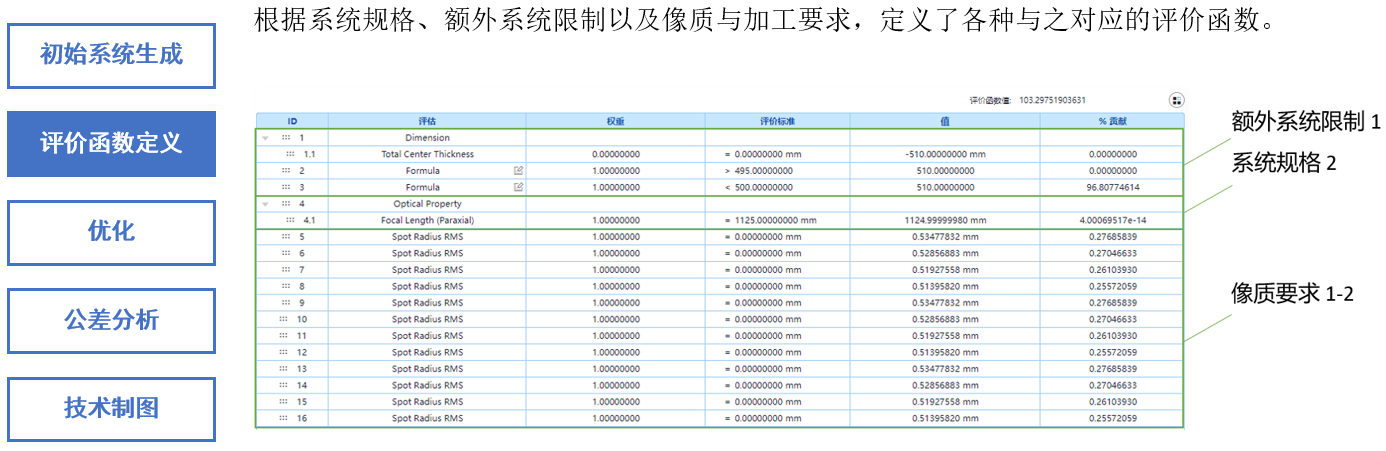 设计结果如下,像质,系统规格、额外系统限制以及加工要求均满足预期设计目标。