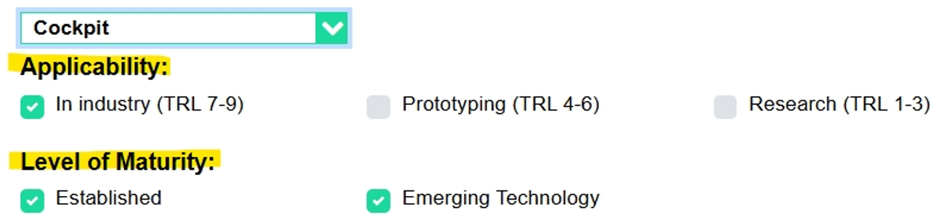 b) 技术成熟度等级(Level-of-Maturity):在输入界面的“Cockpit”模块中,必须至少勾选以下两个选项中的一项: